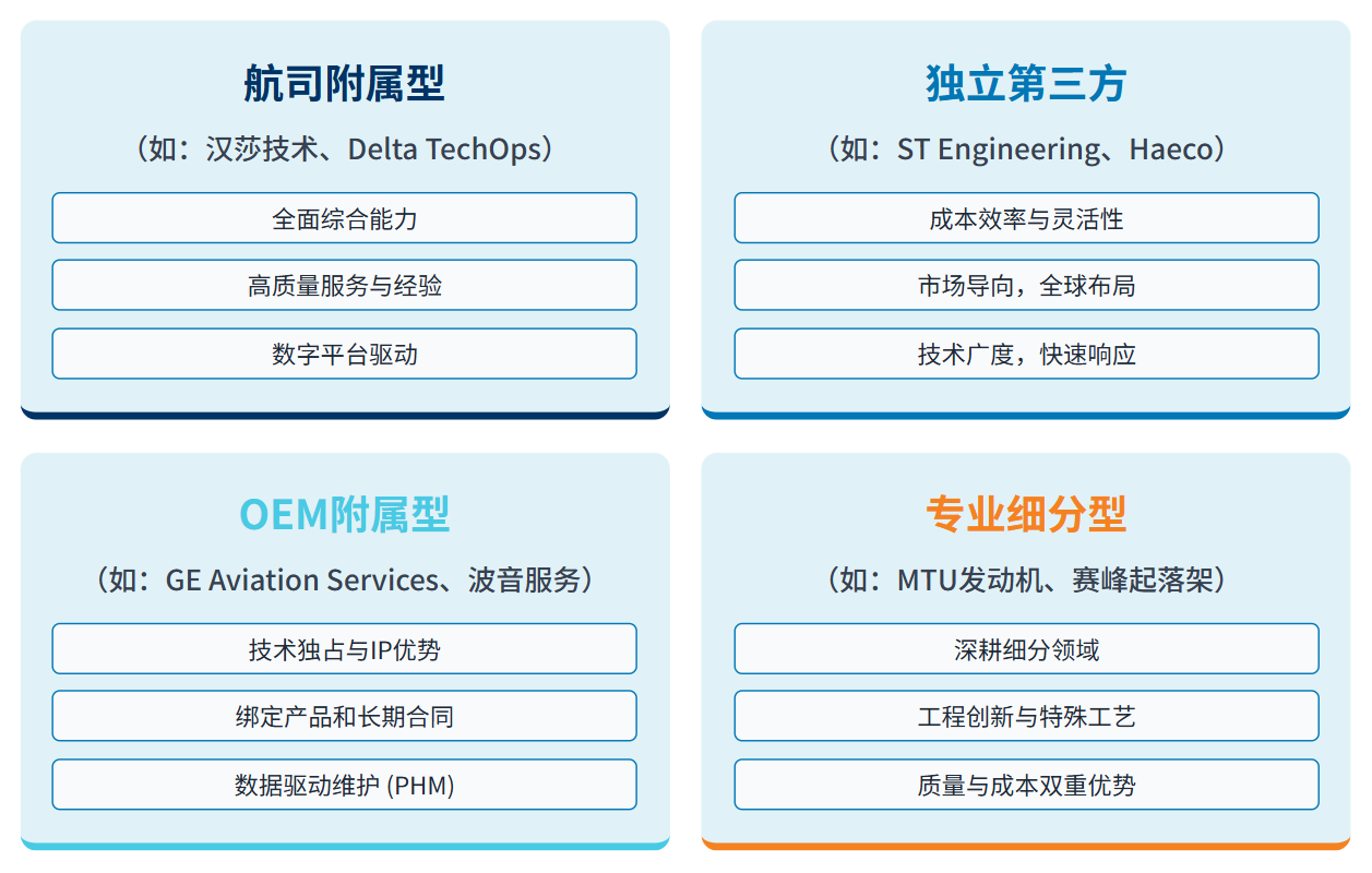 全球MRO市场主要由四类主体构成,策略各有侧重: