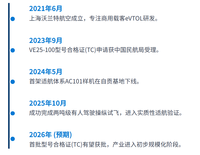 沃兰特VE25-100完成中国首个两吨级eVTOL载人试飞,显示国内客运电动航空已进入适航验证与批产准备阶段。