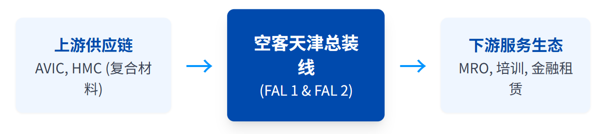 空客天津总装线和宽体机完成和交付中心的集聚,使天津滨海新区成为空客在欧洲以外的首个民用飞机生产线所在地。FAL 2的投产极大地增强了该区域的国际工业枢纽地位。其溢出效应正从传统组装制造业转向高附加值的航空服务业,直接带动MRO、航空培训、金融租赁和智能制造等延伸产业集群在华北地区加速形成,推动天津向航空全生命周期管理中心转型。